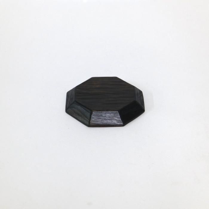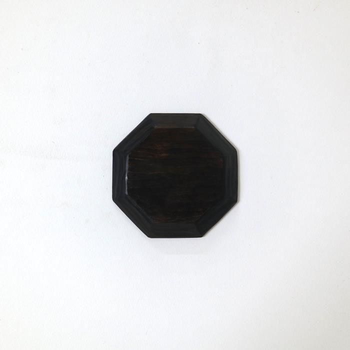 島根県太田市の自然に囲まれた工房で様々な木の塊を鑿、鉋、彫刻等で削りだしていく「刳りもの」と呼ばれる技法で製作されていますフレル/山田哲也さんの木目が美しい温かい雰囲気のまめ皿サイズの赤黒漆八角皿/胡桃です。