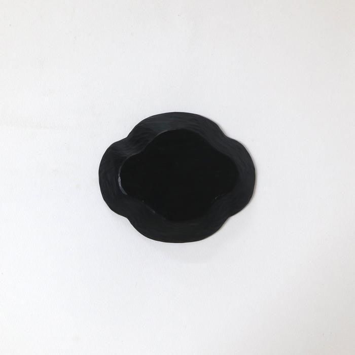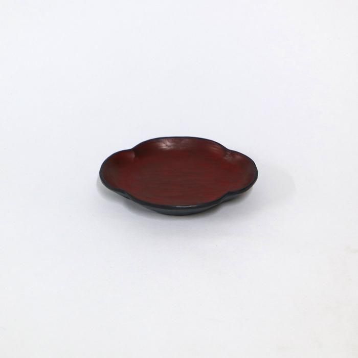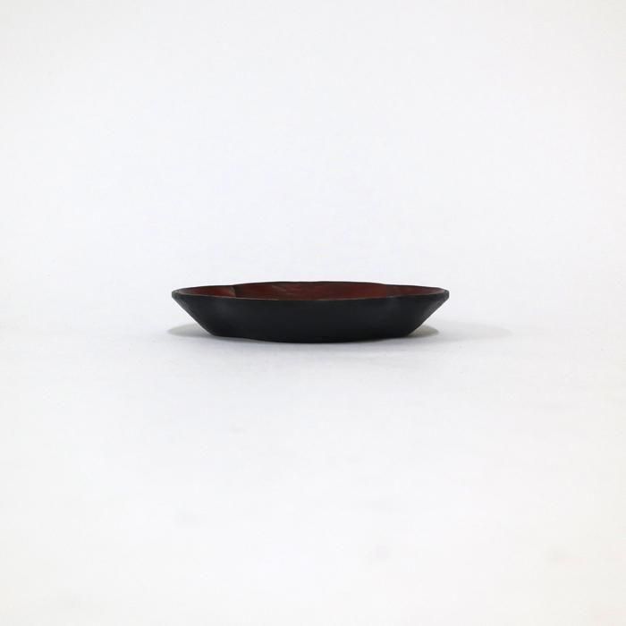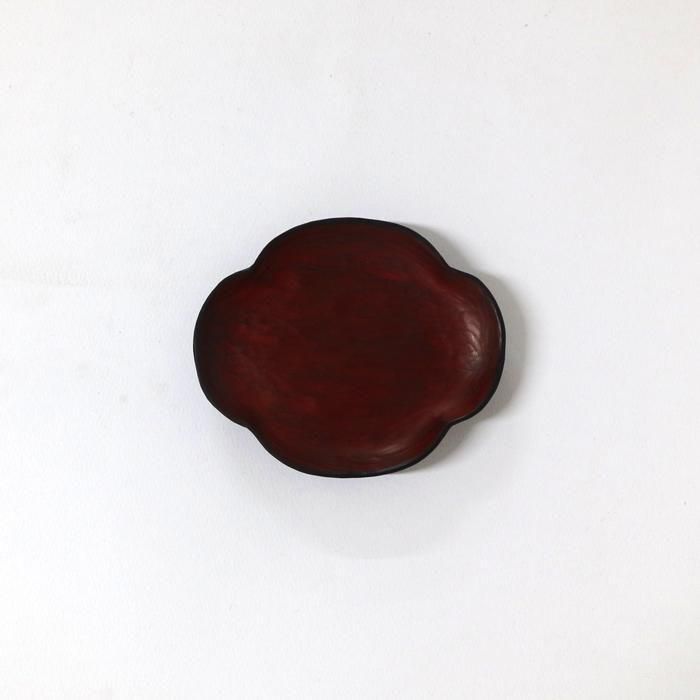 島根県太田市の自然に囲まれた工房で様々な木の塊を鑿、鉋、彫刻等で削りだしていく「刳りもの」と呼ばれる技法で製作されていますフレル/山田哲也さんの木目が美しい温かい雰囲気の小皿サイズの赤漆木瓜皿/山桜です。