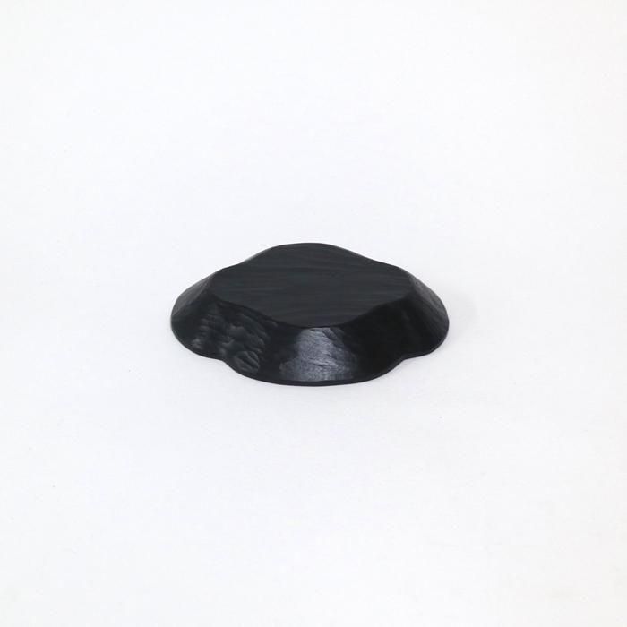 赤漆木瓜皿は、表面の見込みは赤漆、周りと裏面は黒の色粉を咥えた拭き漆で生漆を木地に塗り、専用の拭き取り紙で余分な漆を拭き取る作業を繰り返し美しい艶となっています。