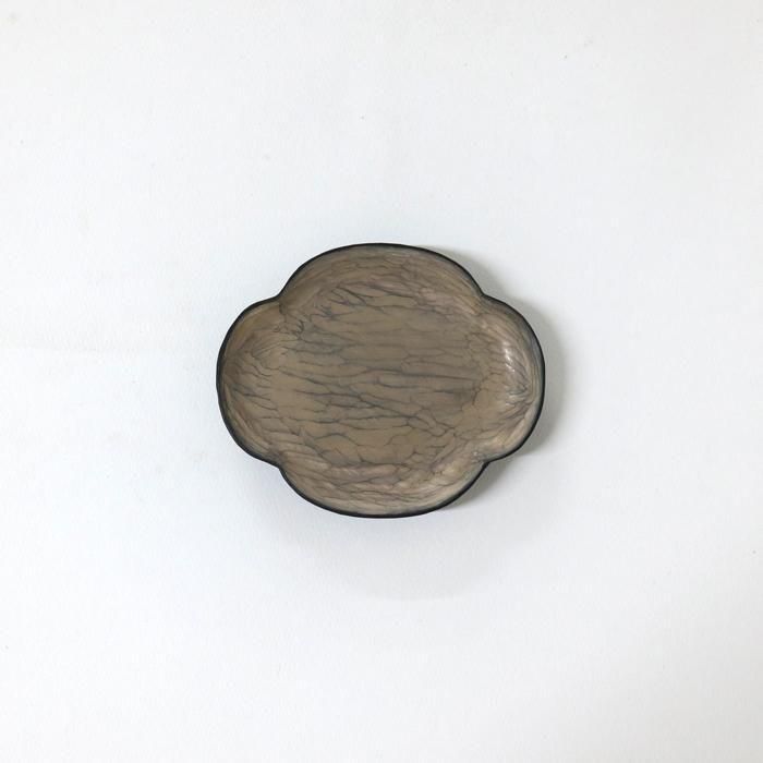 島根県太田市の自然に囲まれた工房で様々な木の塊を鑿、鉋、彫刻等で削りだしていく「刳りもの」と呼ばれる技法で製作されていますフレル/山田哲也さんの木目が美しい温かい雰囲気の小皿サイズの白漆木瓜皿/小/山桜です。