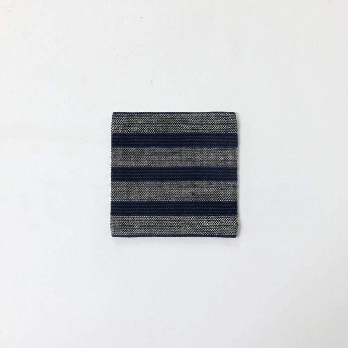 濃淡の青(藍)、異なるタイプの縞の組合せに中村奈津美さんの作家としての高い技、矜持と温かい心遣いが感じられるコースターです。