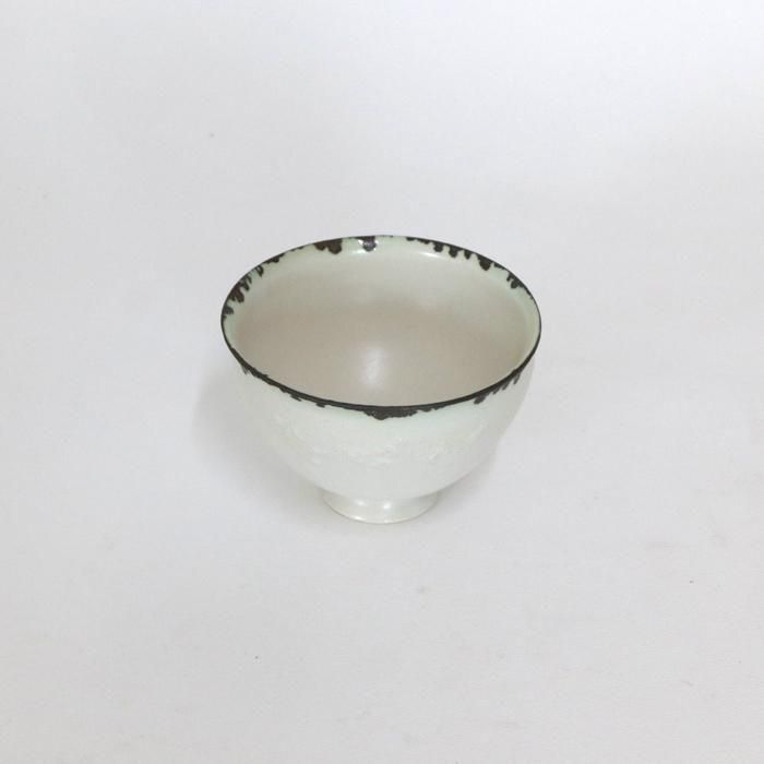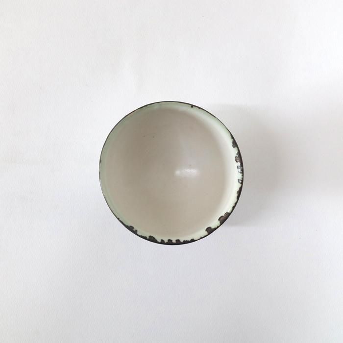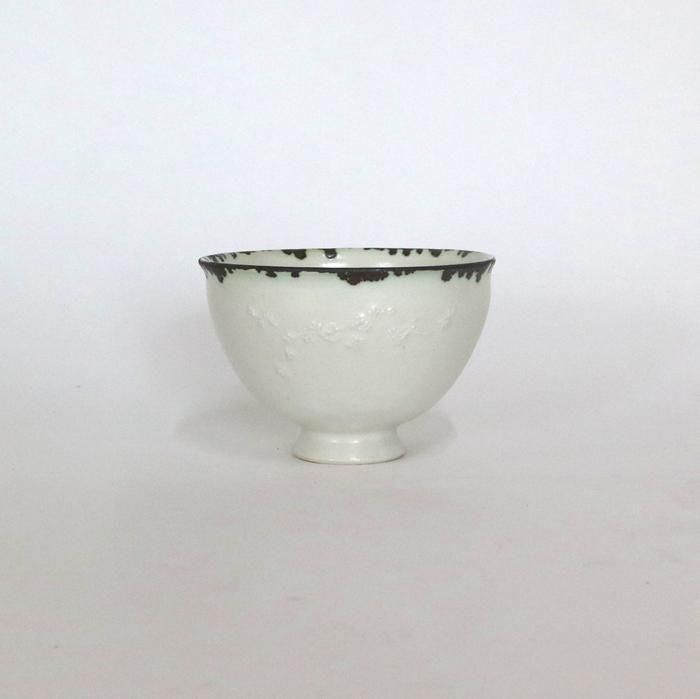 ボウルはr轆轤でラウンドシルエットに成形し、口を鉄で拭き、表面の一箇所にイッチンで横長に野の花のような植物文様が施されています。
