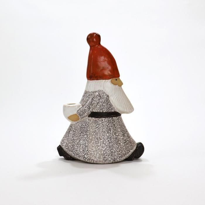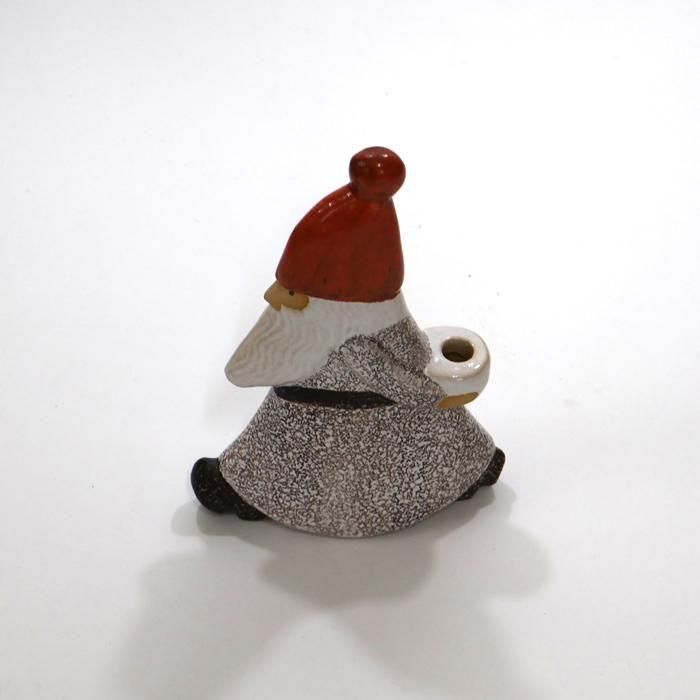 ストレスサンタ/STRESS TOMTEは立派な白いおひげをたくわえて、後手にキャンドルホルダーを持っています。