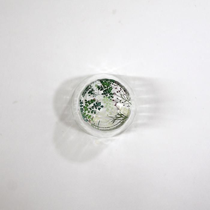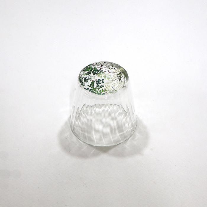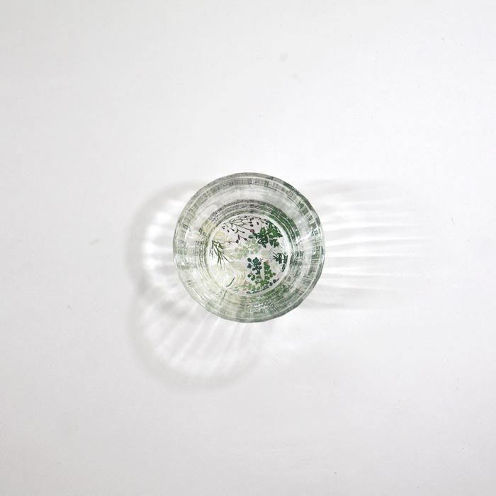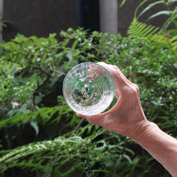 富山ガラス造形研究所を経て、現在も富山の工房にガラス器を制作されています金津沙矢香さんの百花景シリーズのそば猪口グラス/秋の植物です。