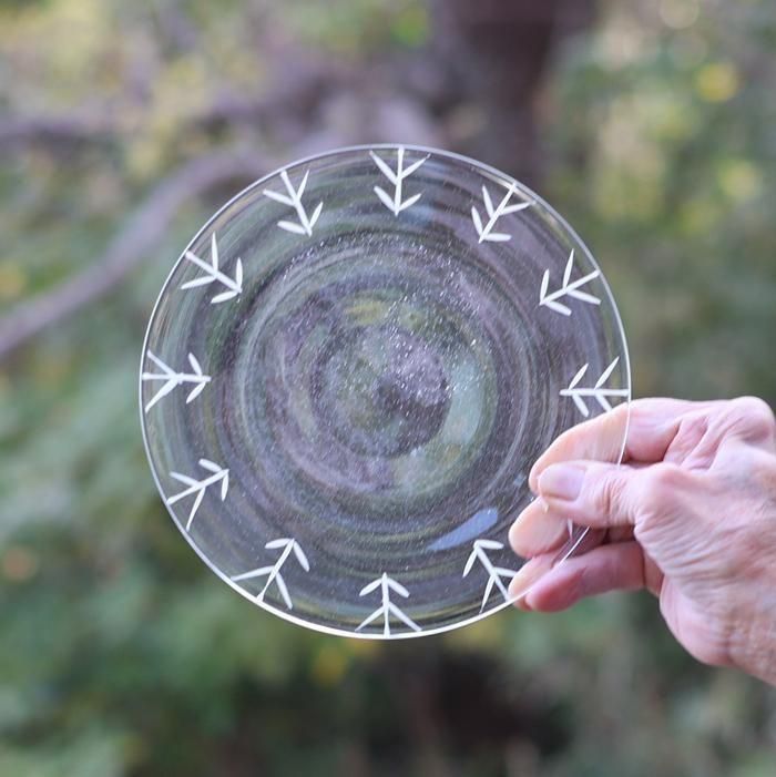 富山ガラス造形研究所を経て、現在も富山の工房にガラス器を制作されています金津沙矢香さんのNostalgiaシリーズのリム皿/リーフです。