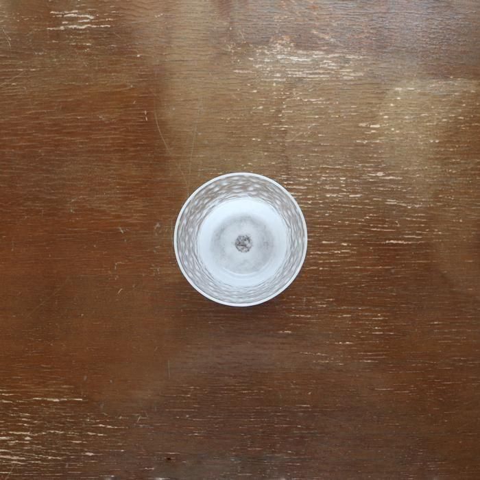 「風景のドローイング」シリーズは、細かく砕いて白くなったパウダー状のガラスをボウルに付着させて、白くしたい部分を除いて削って文様を出し、削った部分をもう一度加熱して透明にするという手仕事ならではの技法です。
