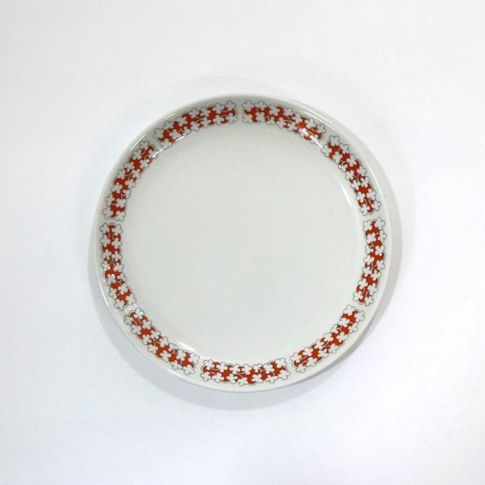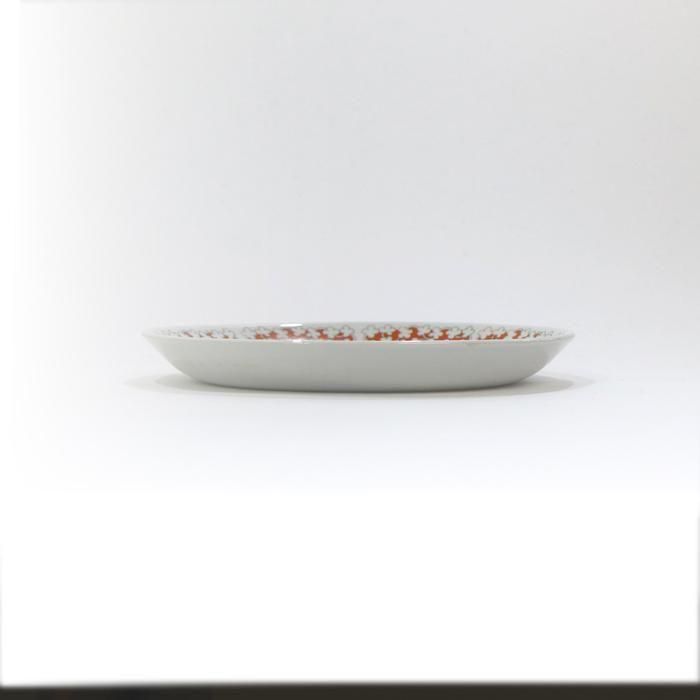 また、プレートは白のベースの縁リム部分にオレンジ色のサークルにカップと同じ白い小花が描かれています。