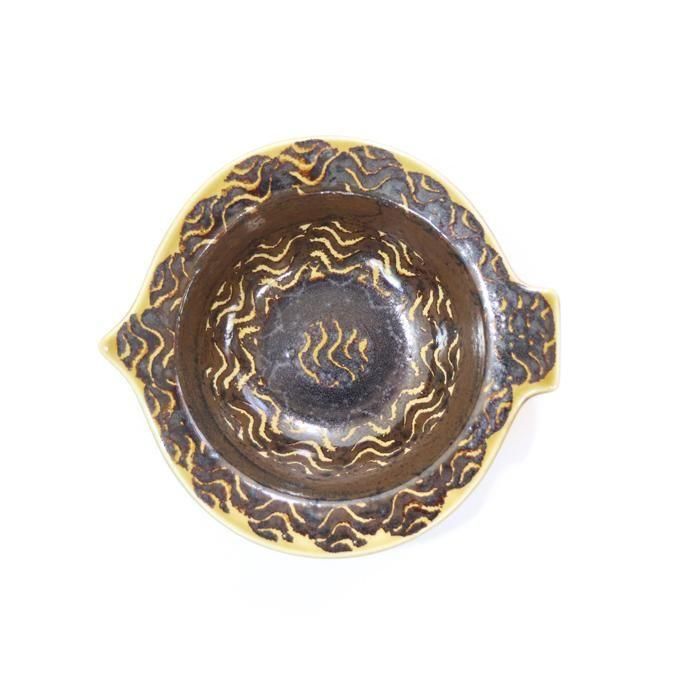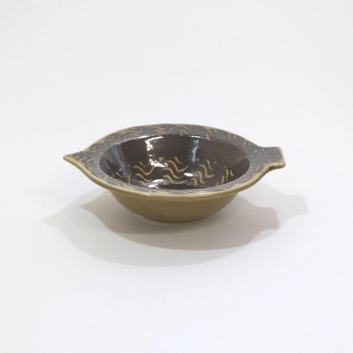 ドーバーソールのような楽しいお魚のフォルムに穏やかで落ち着いた色合いで描かれた模様の対比が面白いアイテムです。