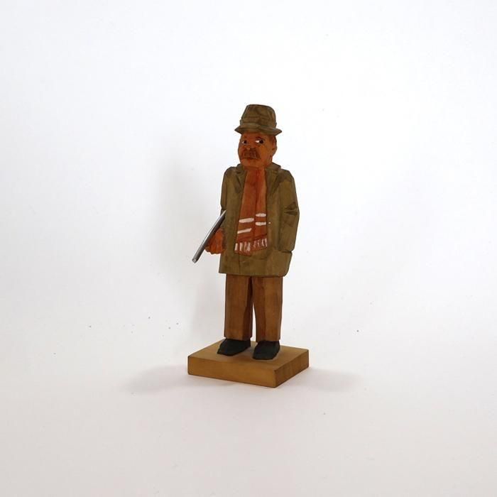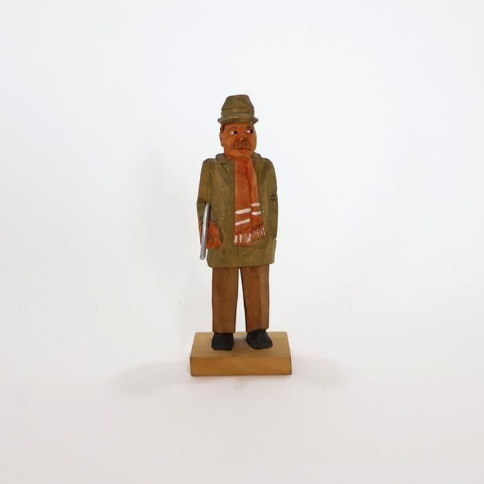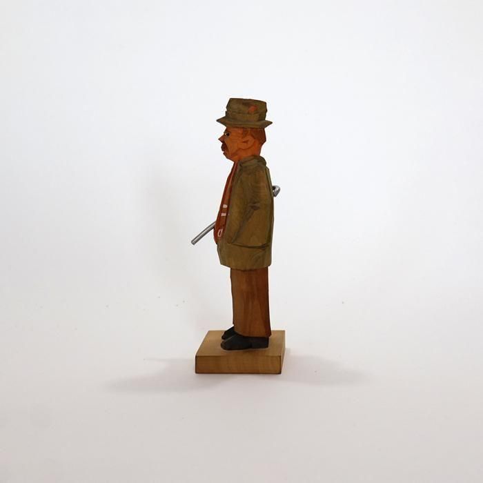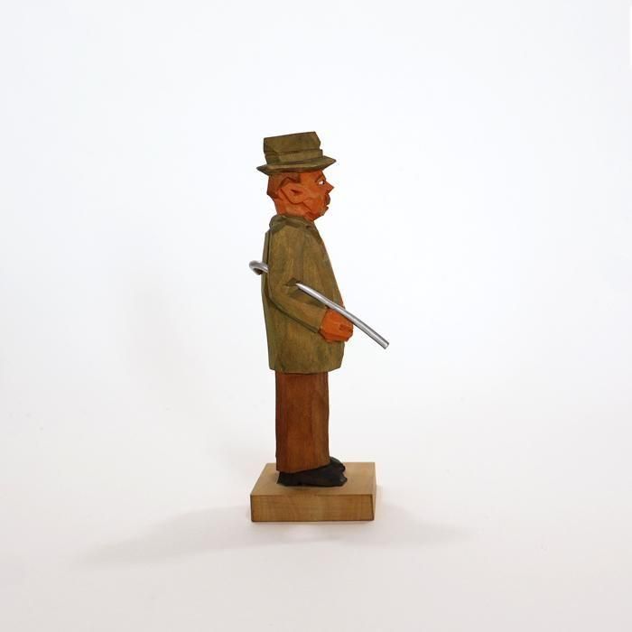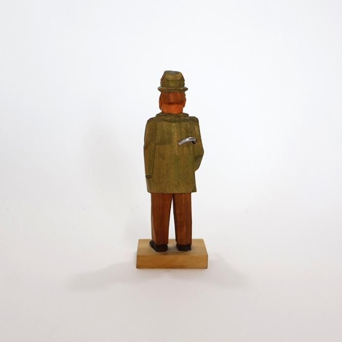 スウェーデン ヴィンテージ/木彫オブジェ/ステッキを抱えた老人