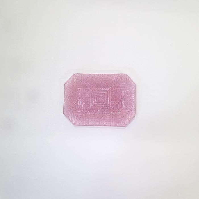 東京ガラス工芸研究所卒業後、現在京都府綾部市の工房で製作されているオオタ硝子研究室/太田良子さんの柄入り八角ミニ小皿/ピンクです。