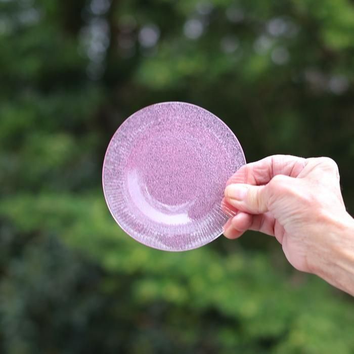 東京ガラス工芸研究所卒業後、現在京都府綾部市の工房で制作されているオオタ硝子研究室(太田良子)さんのリム小皿/ピンクです。