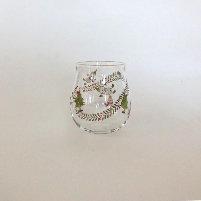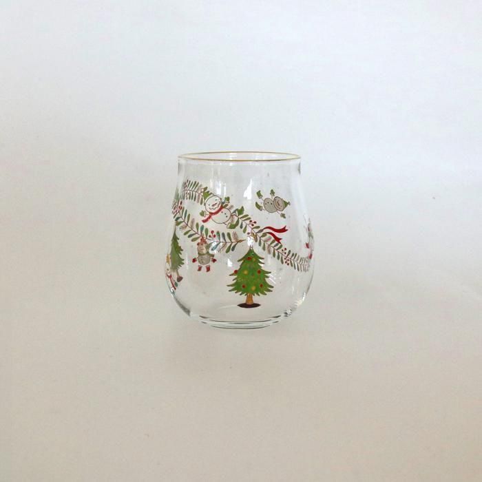 可児ガラス、磐田市新造形館ガラス工房を経て日の出ガラス工芸社のアシスタントを務める富山市の工房にてガラス器を製作されています大塚薫子さんのスノーマンとツリーが絵付けされたグラス/スノーパーティです。