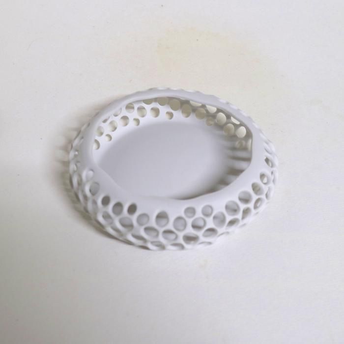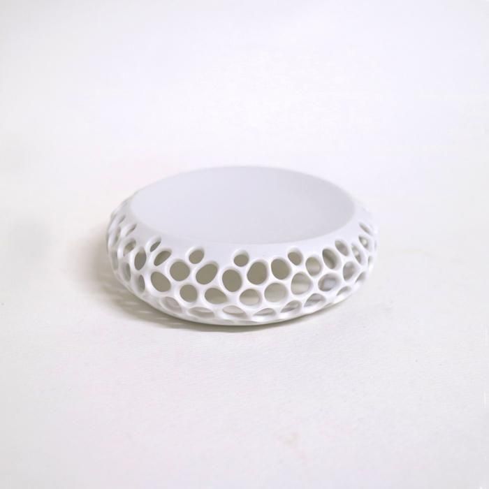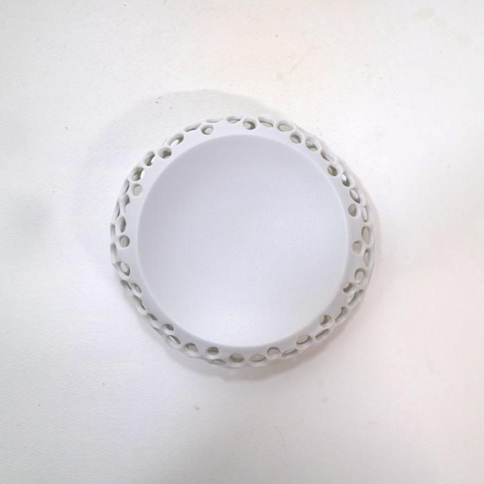 姉妹店「力丸雑貨店」では加藤智恵美さんとの『tete』というユニット工房名で製作されている加藤好康さんが単独で磁土で透かしの作品のみを製作されている透文台皿です。