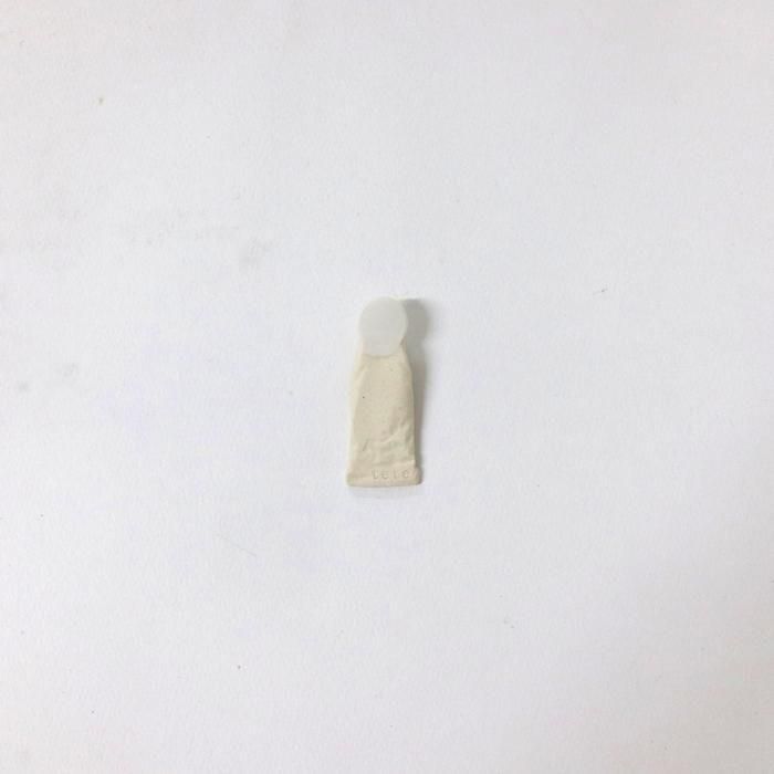 無施釉の生成りの絵の具のチューブから白の絵の具を絞り出している状態となっています。