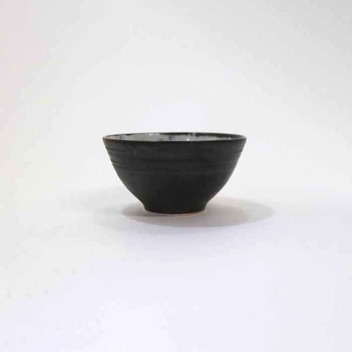 舞鶴(京都)の工房にて独自の土、釉薬を使用、西洋式の薪窯でしっかりと焼成した器を制作されている村山朋子/真泥/MUDDYさんの染付け花庭×黒小鉢です。
