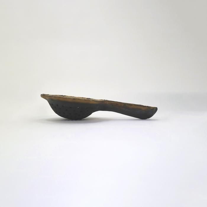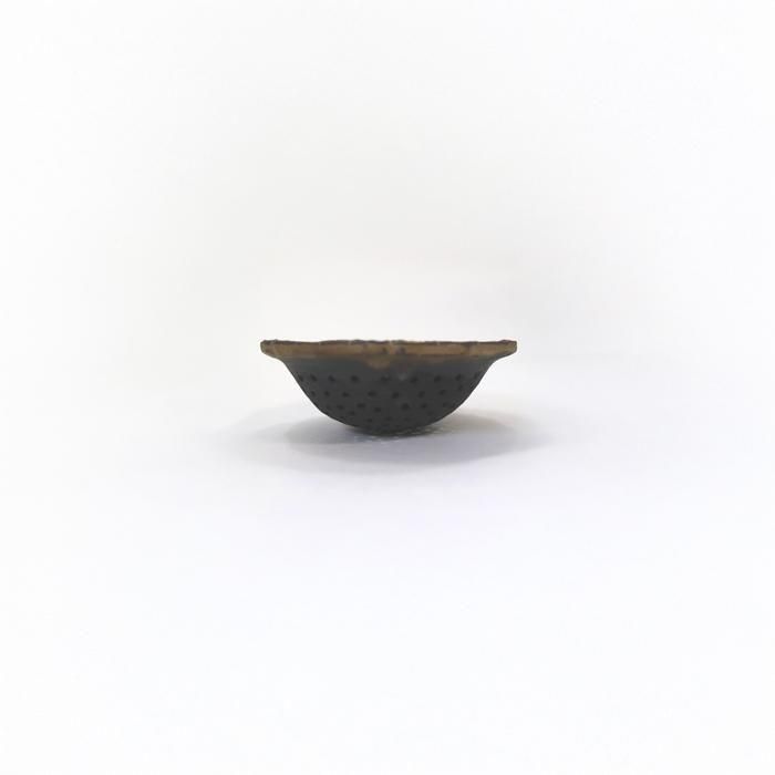 名古屋芸術大学絵画科卒業後、愛知県立窯業高等技術専門校修了され、現在、愛知県の工房で主に半磁器にイッチンで草花をモチーフにした器を作陶されています三浦千穂さんのティーストレーナー/ブロンズです。