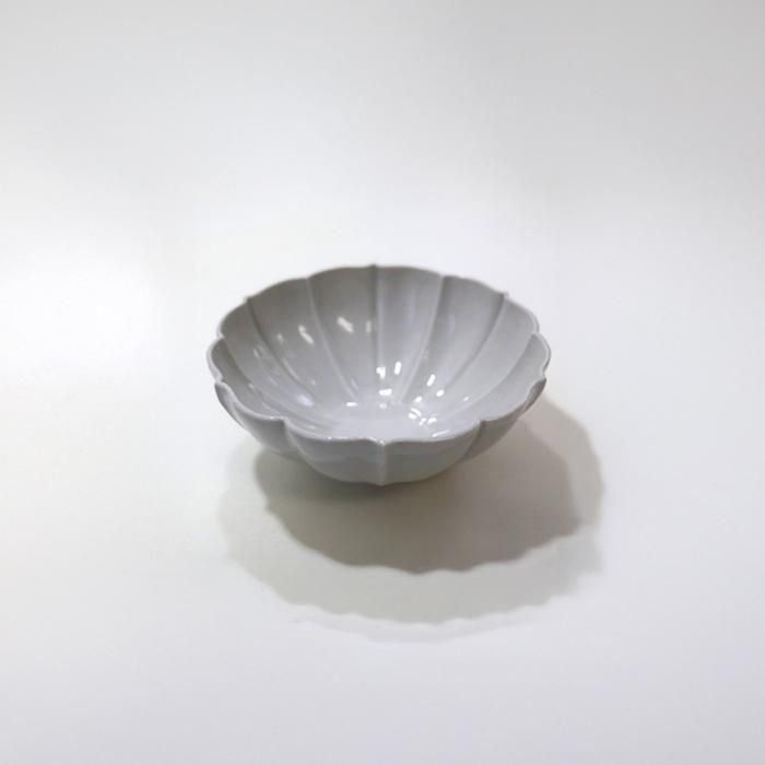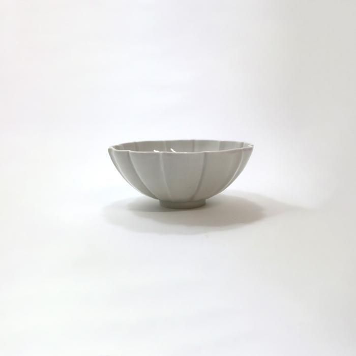 愛知県瀬戸の工房で成形が美しい、シックな器、華のある器、機能性の高い品格のある器を目指して製作されている高島悠吏さんの白磁稜花碗/大です。