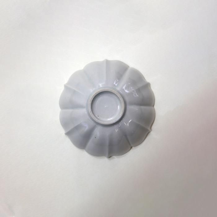 稜花碗は口縁部に規則的な切込みを入れた形で、切込みによって花弁がいくつも出来るところは輪花と同じですが稜花はその花びらごとに先端を尖らせてあるのが特徴です。