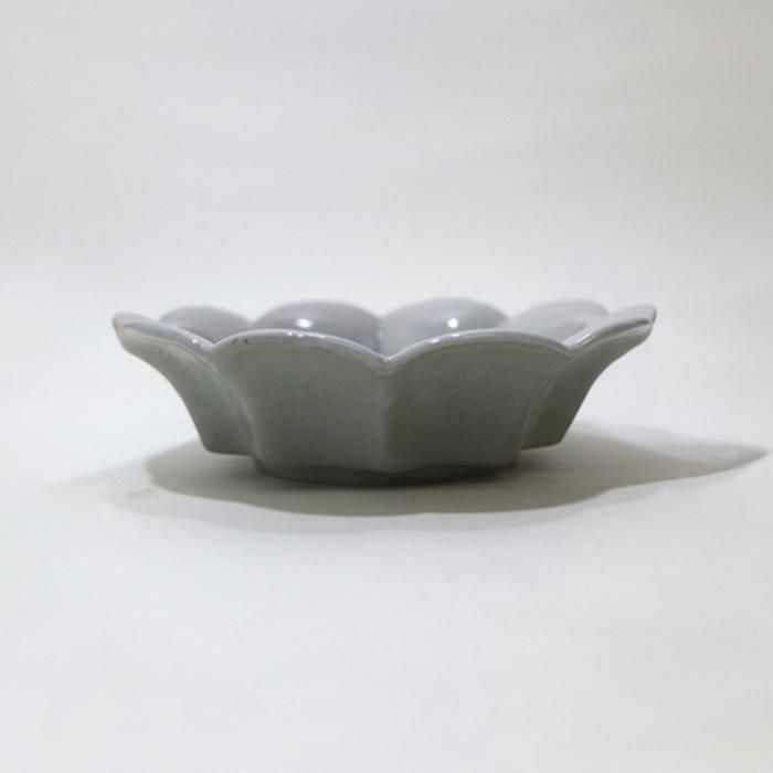 輪花鉢は繊細な稜花椀と比較するとぽってり、ゆったりとした八弁の花びらが白瓷、白磁、藍釉のいずれのどこか古ものを思わせる高島悠吏さんの生地にマッチした鉢となっています。