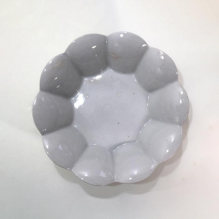愛知県瀬戸の工房で成形が美しい、シックな器、華のある器、機能性の高い品格のある器を目指して製作されている高島悠吏さんの白瓷輪花鉢/中です。