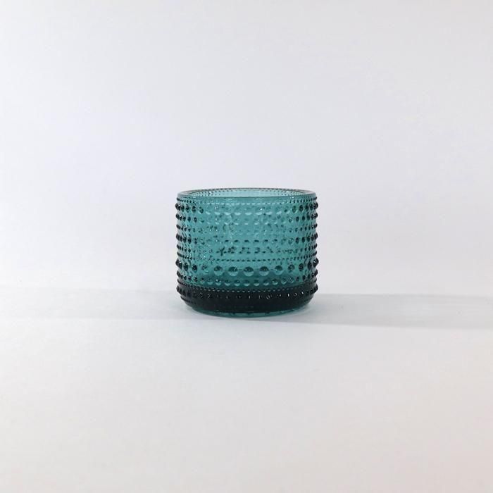 しっかり厚いガラスと表面の雫文様がキャンドルの炎の揺らぎの美しさを一層引き立ててくれます。