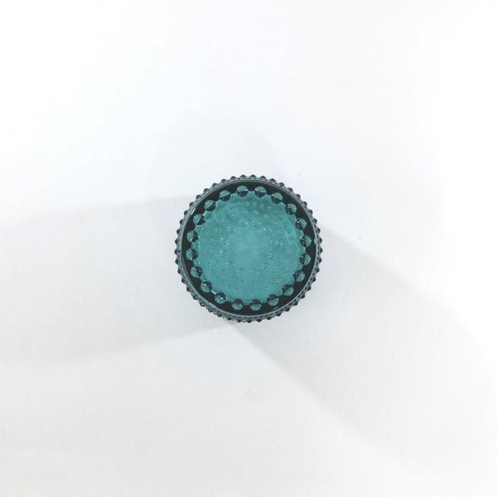 イッタラの前身のヌータヤルヴィ ガラス工場で、1964年にiイッタラ/iittala社の代表的なデザイナーの一人のオイバトイッカが「朝露」をモチーフにしてデザインし、しばらくの間廃番ととなっていましたがオイバトイッカデビュー50周年を記念して2010年にリニューアル復刻されたカステヘルミ/ Kastehelmiのキャンドルホルダー/シーブルーです。