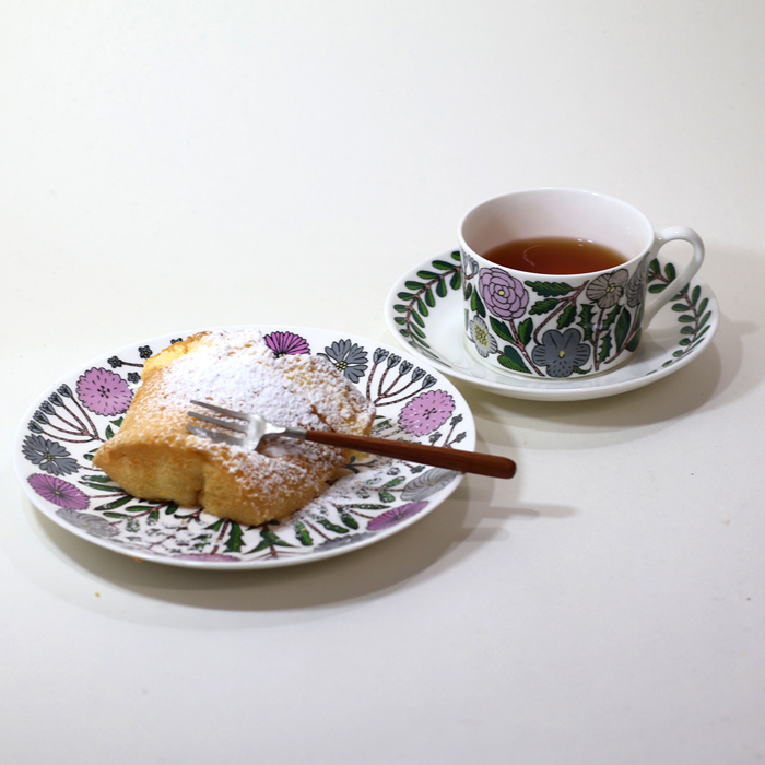 鹿児島睦さん×グスタフスベリ/GUSTVSBERGのマイ/majのカップ&ソーサーとプレートです。