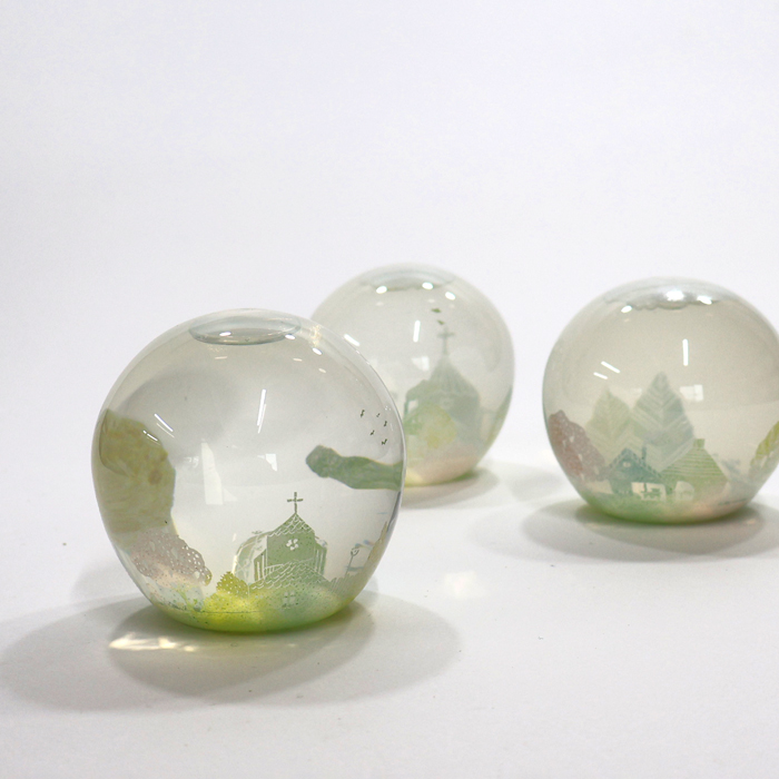 お問合せから、ご希望のスノードームの第1~3希望作品番号と名前(例:丘のある公園/550)、或いはどの作品でも良い場合は「特に無し」とご記載ください。
